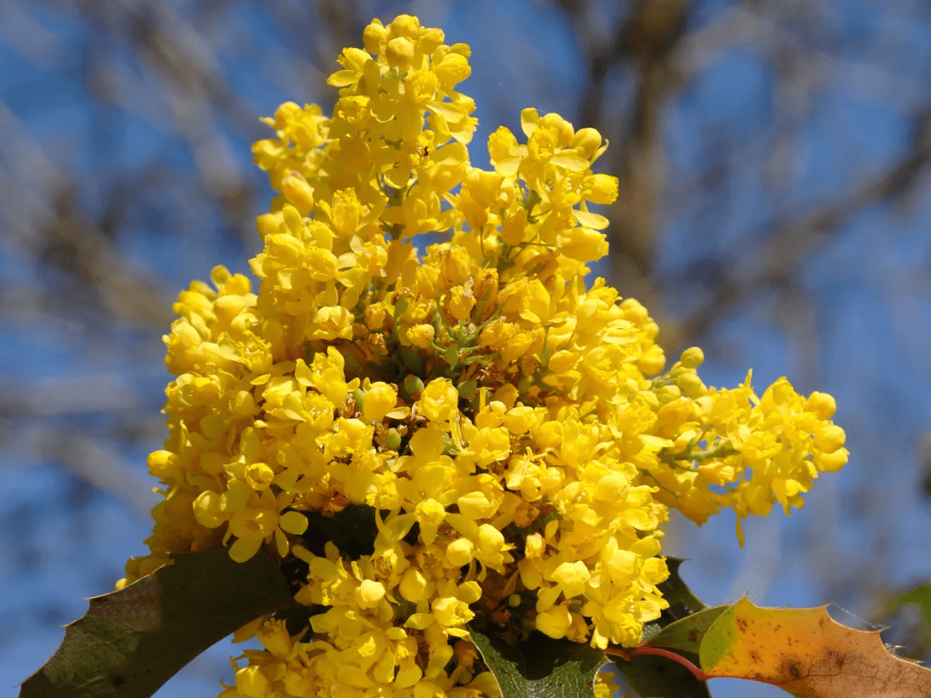 Mahonia is a striking evergreen shrub with bold, architectural foliage and fragrant, bright yellow flowers. Its spiky leaves and architectural form make it a valuable addition to any winter garden.